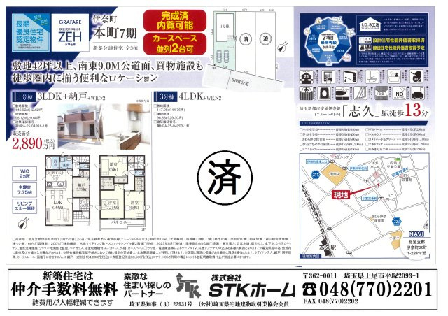 仲介手数料無料 伊奈町本町1丁目 新築 全3棟