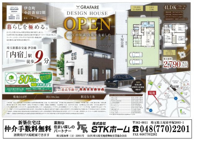 - 仲介手数料無料 伊奈町小針新宿 新築戸建 全1棟
