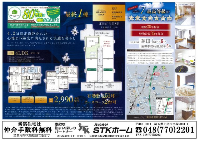 仲介手数料無料 蓮田市黒浜8期 全4棟