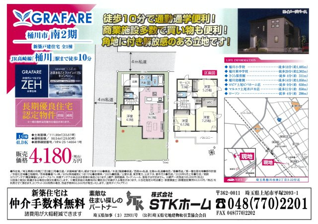 仲介手数料無料 桶川市東2丁目8-19 新築戸建 全1棟の基本情報