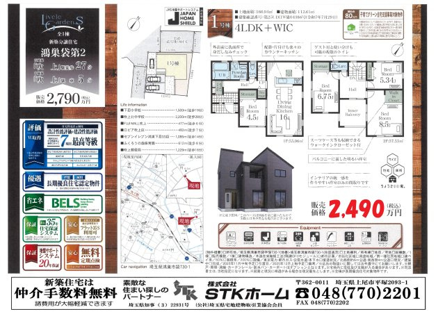 仲介手数料無料 鴻巣市袋 新築戸建 全1棟