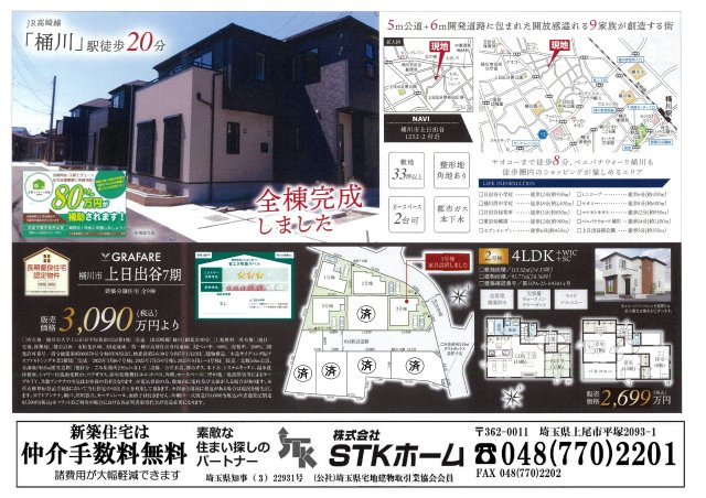 仲介手数料無料 桶川市上日出谷7期 新築戸建 全9棟の基本情報