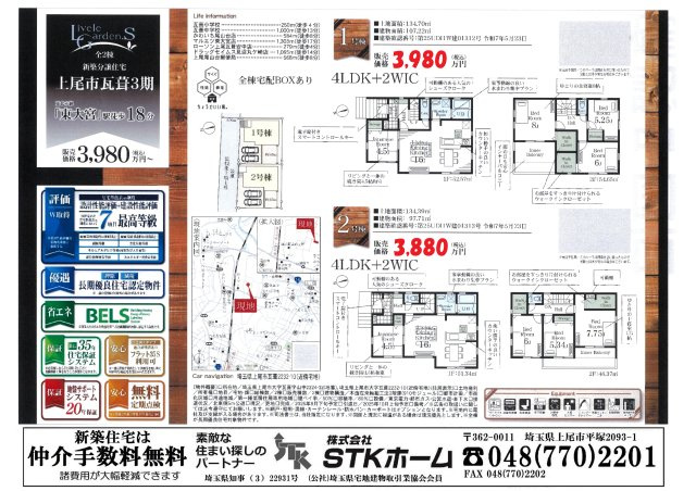 仲介手数料無料 新築戸建 上尾市瓦葺3期 全2棟