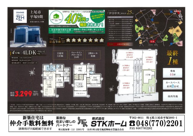 仲介手数料無料 新築戸建 上尾市平塚9期 全5棟の基本情報