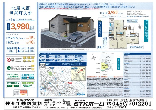 仲介手数料無料 伊奈町大針 新築戸建 全1棟